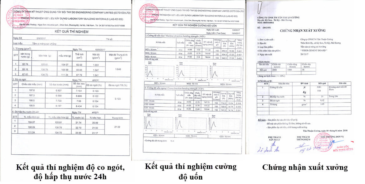 CÁC KẾT QUẢ THÍ NGHIỆM VÀ CHỨNG NHẬN XUẤT XƯỞNG